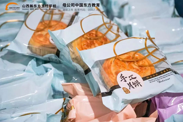 以溫情做皮,幸福為餡,每一塊都是我校西點老師純手工自制,小餅如嚼月,中有酥與飴,是心意,更是情意,這些心意滿滿的新東方月餅,延續(xù)著傳統(tǒng)的風(fēng)華。由西點老師親手制作的月餅,為校園平添了一抹節(jié)日的喜慶,更為大家心里增添了一份溫暖和感動,教學(xué)樓內(nèi)彌漫著喜慶和甜蜜的氣息。