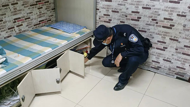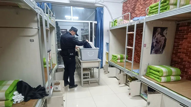 派出所民警在校領(lǐng)導(dǎo)的指引下,分別對每間宿舍的電器、線路、存物柜等存放物件進(jìn)行排查,在排查過程中,檢查人員提醒學(xué)生要嚴(yán)格遵守宿舍規(guī)章制度,保持宿舍衛(wèi)生,告誡學(xué)生嚴(yán)禁使用大功率危險電器或存放危險物品等,防患于未然。