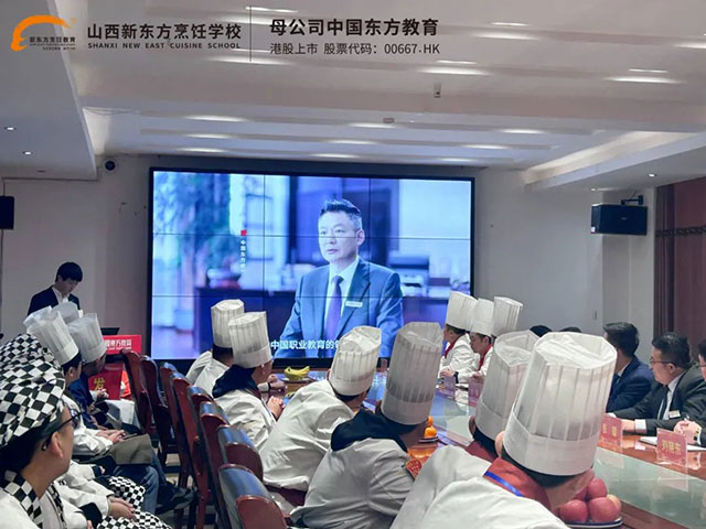 見面會開場時,學(xué)區(qū)負(fù)責(zé)人廖永利主任代表學(xué)校對2023級新生的到來表達(dá)了熱烈的歡迎和祝賀。“到了山西新東方,大家就是一家人。”廖主任表示,大家能相聚在山西新東方是一種緣分,從今天起,山西新東方就是大家共同的根,希望大家永保對烹飪的熱愛,永遠(yuǎn)珍惜這份緣分。此外,廖主任希望大家盡快適應(yīng)環(huán)境,轉(zhuǎn)換身份;培養(yǎng)主動學(xué)習(xí)的意識,管理好自己的生活、學(xué)業(yè),多與老師、學(xué)長學(xué)姐交流,注意做事的效率。最后,廖主任強調(diào)新生要學(xué)會成長,講好新東方故事,為自己爭光,為新東方爭光。