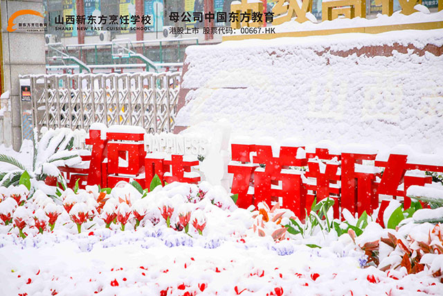 踩在雪地里的腳印發(fā)出“咯吱咯吱”聲,隨手的涂鴉伴隨著嬉笑聲,是這春日里獨(dú)家的記憶,是2023級(jí)新生在太原的第一場(chǎng)雪,他們帶著對(duì)烹飪大學(xué)的美好向往,和山西新東方來了一次浪漫的邂逅。