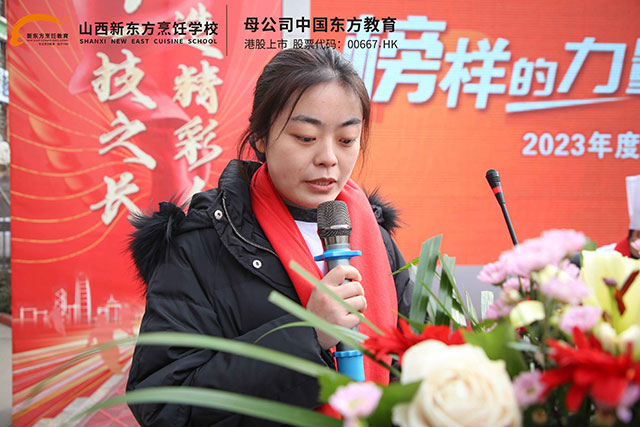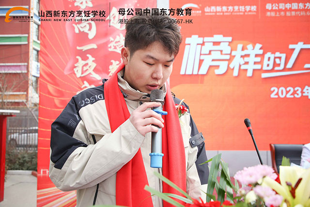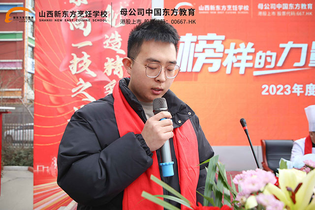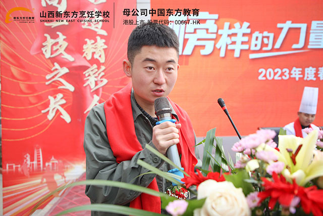 最后,山西新東方烹飪學(xué)校校區(qū)負(fù)責(zé)人為本次成功學(xué)子報(bào)告會致辭,廖主任對這次培訓(xùn)的成功舉辦和所取得的成績給予高度評價(jià),并寄語全校師生,希望在新的起點(diǎn)上揚(yáng)帆起航,將報(bào)告會上傳授的知識內(nèi)化于心、外化于行,向優(yōu)秀看齊、向榜樣學(xué)習(xí),行而不輟、未來可期。