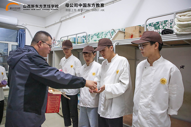 山西新東方烹飪學(xué)校于曉曦校長帶領(lǐng)學(xué)校各部門負(fù)責(zé)人走進學(xué)生宿舍,看望和慰問了2023級新生。
