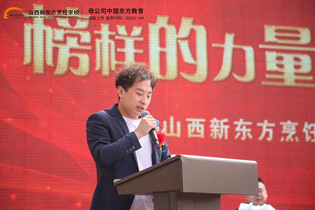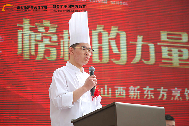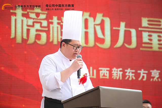 山西新東方烹飪學(xué)校校區(qū)負(fù)責(zé)人為本次成功學(xué)子報告會致辭,廖主任對本次培訓(xùn)的成功舉辦以及所取得的顯著成績給予了高度評價。他說:“這次的培訓(xùn)不僅是我們學(xué)校教學(xué)成果的一次展示,更是我們?nèi)熒餐、不懈追求的結(jié)果。”他的話語中充滿了自豪和欣慰。接著,廖主任寄語全校師生,希望在新的起點上,大家能夠揚帆起航,將報告會上所傳授的知識真正內(nèi)化于心、外化于行。隨后,廖主任用充滿激勵的話語結(jié)束了他的致辭:“行而不輟,未來可期。只要我們堅持不懈,勇往直前,就一定能夠創(chuàng)造出更加輝煌的明天!”他的話語如同一道明亮的燈塔,照亮了全校師生前進(jìn)的道路,也激發(fā)了大家心中無限的希望和憧憬。