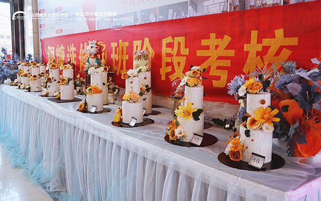 為了檢驗(yàn)學(xué)員這一段時(shí)間翻糖蛋糕制作的學(xué)習(xí)成果,今天,以“美”為主題的翻糖作品大聚會(huì)在西點(diǎn)樓如期舉行。這不僅僅是一場(chǎng)視覺的盛宴,更是一次翻糖蛋糕制作技藝的競(jìng)技與較量。走進(jìn)考核現(xiàn)場(chǎng),翻糖花卉作品如同藝術(shù)品般琳瑯滿目,它們以獨(dú)特的姿態(tài)和魅力,展示著烘焙藝術(shù)的無限可能與創(chuàng)意。