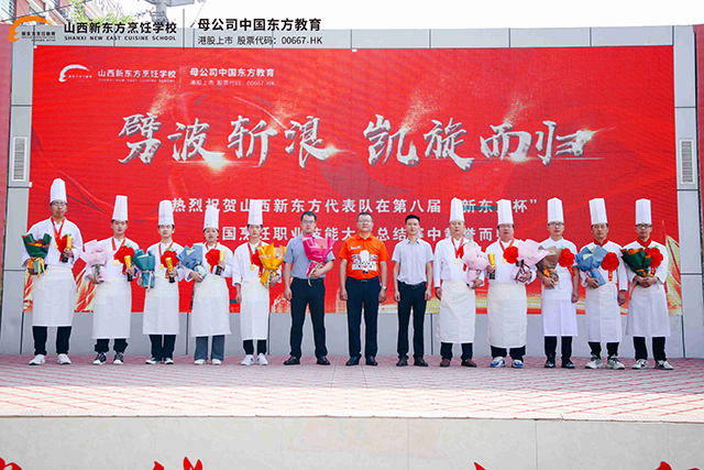 一座座沉甸甸的獎(jiǎng)杯,是他們辛勤付出的最好回報(bào),也是他們榮耀之旅的完美句點(diǎn)。今天,他們帶著滿身的榮耀與喜悅,載譽(yù)而歸。山西新東方烹飪學(xué)校的師生們懷著無比激動和喜悅的心情,早早地守候在校門口,用最熱烈的方式,歡迎著這些在賽場上閃耀的明星們。
