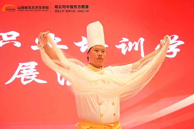 為了讓山西面食更加有特色,有品質(zhì),有文化,也為了更好地繼承和發(fā)揚(yáng)山西面食文化,培育和打造山西美食文化品牌,山西新東方在積極開(kāi)設(shè)中式面點(diǎn)課程的同時(shí),成立面食表演社團(tuán)。社團(tuán)從成立之日起,就將“弘揚(yáng)山西面食文化、傳承面食制作技藝”當(dāng)作使命,經(jīng)過(guò)學(xué)校面點(diǎn)老師多年的訓(xùn)練和不斷的改進(jìn)與創(chuàng)新,將傳統(tǒng)面食制作進(jìn)行藝術(shù)化創(chuàng)作,并將雜技、街舞、流行音樂(lè)等表演貫穿其中,不僅展現(xiàn)形式更具表演性和觀賞性,更是讓山西面食有了藝術(shù)的生命力。
