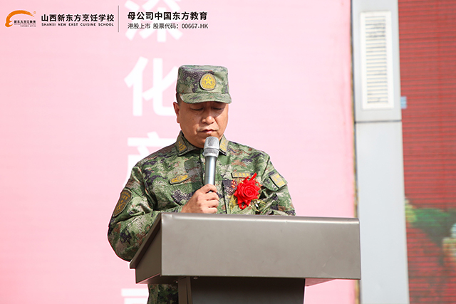 山西新東方校區(qū)負責人對承訓部隊表示崇高的敬意和衷心的感謝。繼而詳細闡述了軍訓對新生的重要意義并對全體新生提出殷切期盼,希望同學們在軍訓過程中做到三立:一是立形,要在軍訓中外樹形象,內(nèi)塑品質(zhì);二是立心,要在軍訓中安心訓練,潛心求學;三是立志,要在軍訓中追求探索,志存高遠。用軍訓第一課為職校生活鋪墊最好的基礎,在這里,遇見更好的自己。最后,廖主任希望全體老師和后勤人員熱情做好服務工作,為本次軍訓的圓滿成功助力。