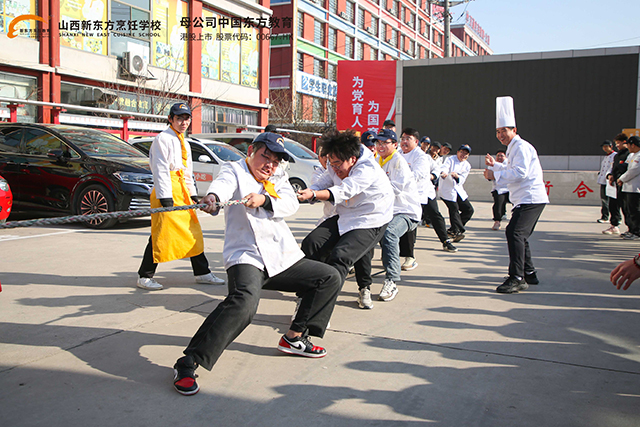 為展現(xiàn)新時(shí)代中國(guó)青年的積極風(fēng)貌,豐富同學(xué)們的課余生活,激發(fā)同學(xué)之間的和諧友愛(ài),促進(jìn)班級(jí)的團(tuán)隊(duì)建設(shè),豐富同學(xué)們的課余生活,山西新東方烹飪學(xué)校舉辦了以”凝心聚力,“繩”采飛揚(yáng)“為主題的拔河比賽,同學(xué)們熱情高漲,踴躍報(bào)名。