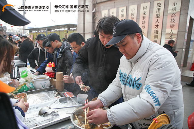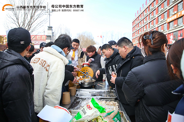 如果說游戲是心靈的歡愉,那么美食便是味蕾的盛宴。走進山西新東方元宵美食匯的現場,仿佛踏入了一個五彩斑斕的美食世界。學生們利用所學技能,精心烹制了一道道色香味俱全的佳肴。關東煮的攤位前,熱氣騰騰,香氣四溢。在寒風凜冽的節(jié)氣利,一鍋熱氣騰騰的關東煮無疑是最佳的選擇。各種丸子、豆腐、蔬菜在滾燙的湯底中翻滾,散發(fā)出誘人的香氣;燒烤區(qū),炭火熊熊,學生們熟練地翻轉著烤架上的食材,新鮮的蔬菜、鮮嫩的肉串,在炭火的烘烤下散發(fā)出誘人的香味,讓人垂涎欲滴。
