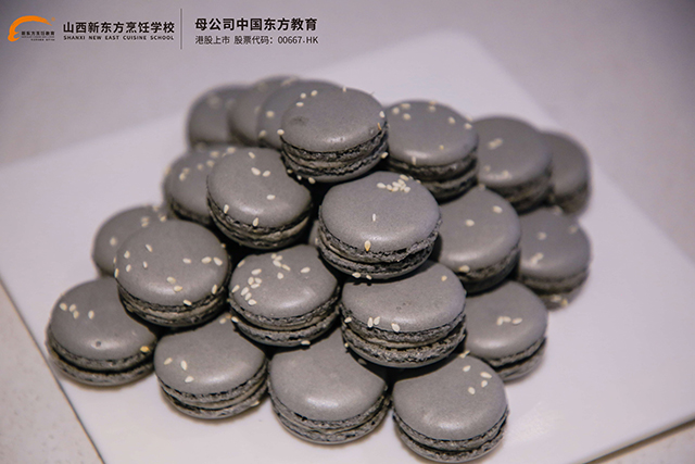 邱老師首先展示的是意大利果仁曲奇,那金黃誘人的色澤、錯(cuò)落有致的果仁排列,瞬間吸引了所有人的目光。大師手法嫻熟,從原料配比到烘烤溫度,每一個(gè)細(xì)節(jié)都透露出他對(duì)甜品制作的極致追求。緊接著,黑芝麻馬卡龍登場(chǎng),這款融合了中式元素的法式甜品,在邱偉恩老師的巧手下,不僅外形精致,口感更是層次分明,黑芝麻的醇厚與馬卡龍的酥脆完美結(jié)合,讓人回味無(wú)窮。