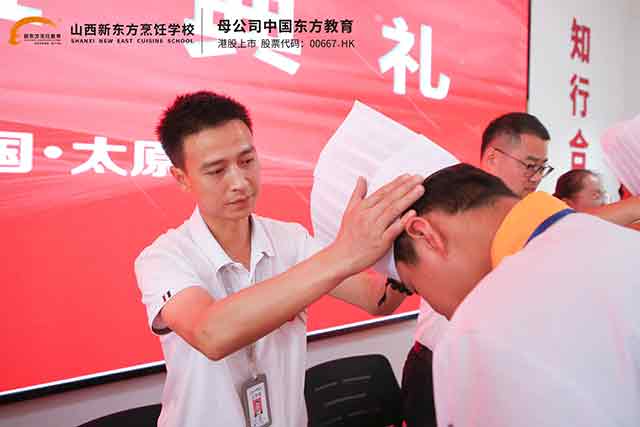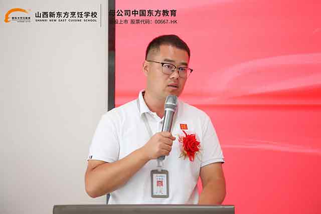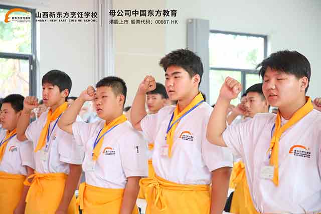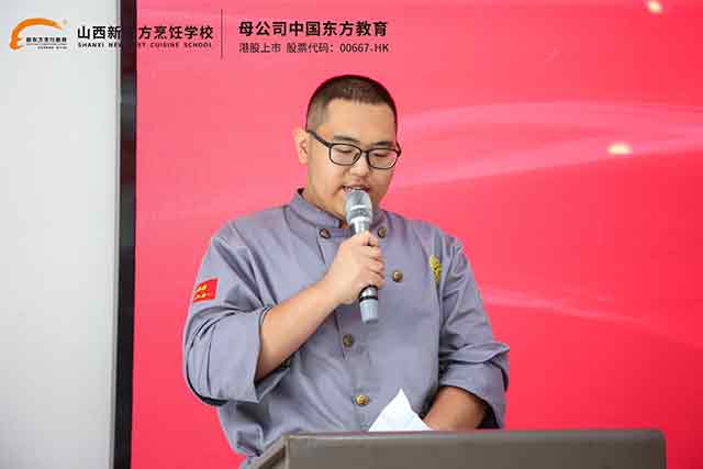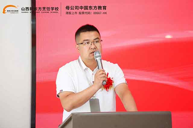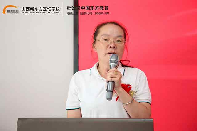 不啻微芒,挺膺擔(dān)當(dāng)。在開班典禮上,校區(qū)負(fù)責(zé)人代表學(xué)校對全體新生的到來表示熱烈歡迎,并簡要介紹了山西新東方職校的辦學(xué)理念與發(fā)展歷程。“新東方走過三十余年,始終堅守‘明德尚能,知行合一’的校訓(xùn),我們相信,技能是立身之本,匠心是成事之基。”他鼓勵新生們珍惜在校時光,不僅要學(xué)好烹飪技藝,更要錘煉專注、嚴(yán)謹(jǐn)?shù)穆殬I(yè)態(tài)度,“未來的餐飲行業(yè)需要的是‘懂技術(shù)、有溫度、會創(chuàng)新’的人才,希望你們在這里不僅成為‘好廚師’,更能成為‘好匠人’。”
