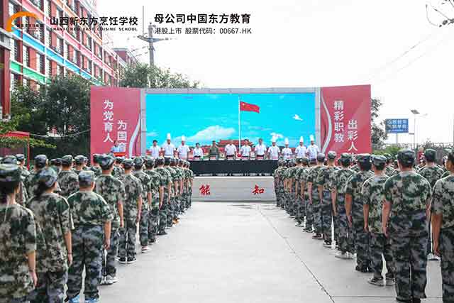 山西新東方職校25級(jí)秋季新班軍訓(xùn)開營儀式在學(xué)校操場(chǎng)隆重舉行。全體25級(jí)新生身著統(tǒng)一軍訓(xùn)服,精神抖擻地列隊(duì)集結(jié),開啟了他們?cè)?a target='_blank'>