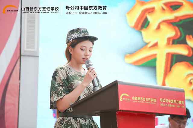 參訓(xùn)新生代表首先發(fā)言,她表示,能夠加入山西新東方職校這個(gè)大家庭,內(nèi)心充滿激動(dòng)與期待。“早就聽說軍訓(xùn)是學(xué)校的‘開學(xué)第一課’,是鍛煉意志、培養(yǎng)紀(jì)律性的好機(jī)會(huì)。”她代表全體新生承諾,將以積極的態(tài)度投入軍訓(xùn),嚴(yán)格遵守紀(jì)律,聽從教官指揮,不怕苦、不怕累,在訓(xùn)練中錘煉堅(jiān)韌品格,學(xué)會(huì)團(tuán)結(jié)協(xié)作,為未來的技能學(xué)習(xí)打下堅(jiān)實(shí)的素養(yǎng)基礎(chǔ)。