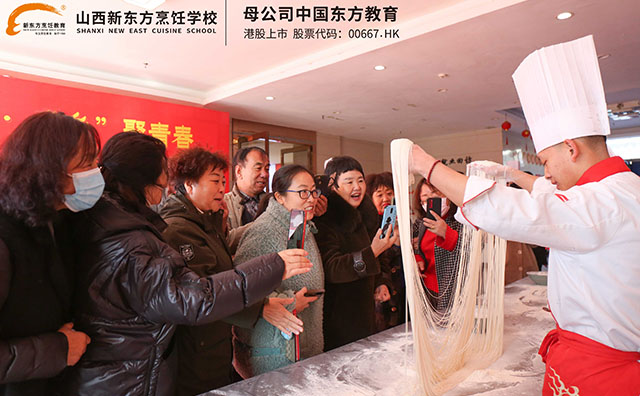 為了歡迎各中學(xué)老師一行,我校學(xué)生專(zhuān)門(mén)開(kāi)展了一系列頗具觀賞性的面食特技表演,學(xué)生們嫻熟自如的表演和精湛的技藝,令領(lǐng)導(dǎo)組拍案叫絕。