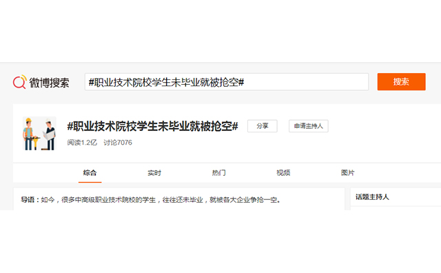 2021年12月12日23點30分,央視財經官方微博發(fā)布了這樣條微博:如今,很多中高級職業(yè)技術院校的學生,往往還未畢業(yè),就被各大企業(yè)爭搶一空。