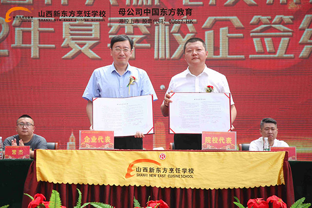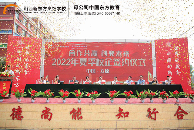 為進一步深化校企合作、產教融合,主動適應餐飲行業(yè)發(fā)展的需要,使我校的專業(yè)教學更加貼近企業(yè)實際,進一步增強學校的教學、實習與社會服務能力,為學生實習、實訓、就業(yè)提供更多空間,山西新東方烹飪學校持續(xù)開設“校企合作”定向班。6月27日,山西新東方2022年夏季校企合作簽約儀式圓滿舉行,我校與多家優(yōu)質企業(yè)再度聯(lián)手,達成合作。據悉,經過校企雙方領導在不同層面進行密集的接洽與溝通,此次簽約,雙方將本著“資源共享、優(yōu)勢互補、互利互惠、共同發(fā)展”的原則,主動適應餐飲產業(yè)發(fā)展的需要,實現(xiàn)產業(yè)鏈與教育鏈之間的優(yōu)勢互補,在包括西餐、西點等方面開展合作共建。