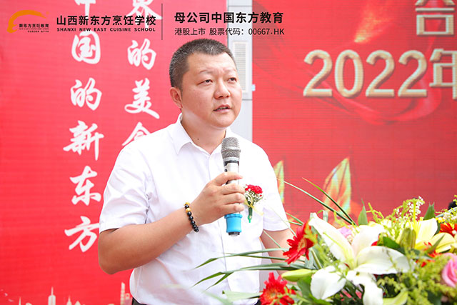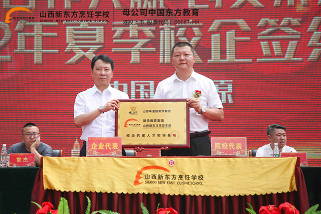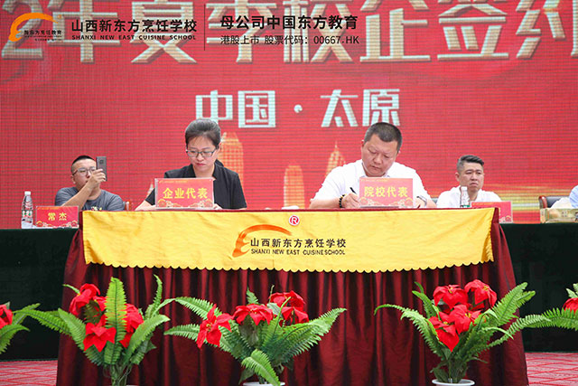 山西新東方烹飪學校創(chuàng)就業(yè)指導中心負責人首先代表學校對企業(yè)一行的到來表示熱烈歡迎,他指出本次簽約儀式不僅是促進學生更加充分更高質量實習、就業(yè)的積極行動,更是校企雙方探索建立長效合作機制、推進更深層次合作的有益探索。下一步,我們還將邀請企業(yè)相關管理和技術人員走進學校,對學生和老師進行培訓授課,我們也會定期地組織老師和學生走進企業(yè)進行崗位的認知和培訓。